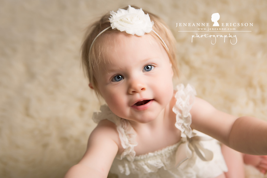 Isn’t she adorable! I love those big blue eyes! She loved that necklace and really got into eating her cake!