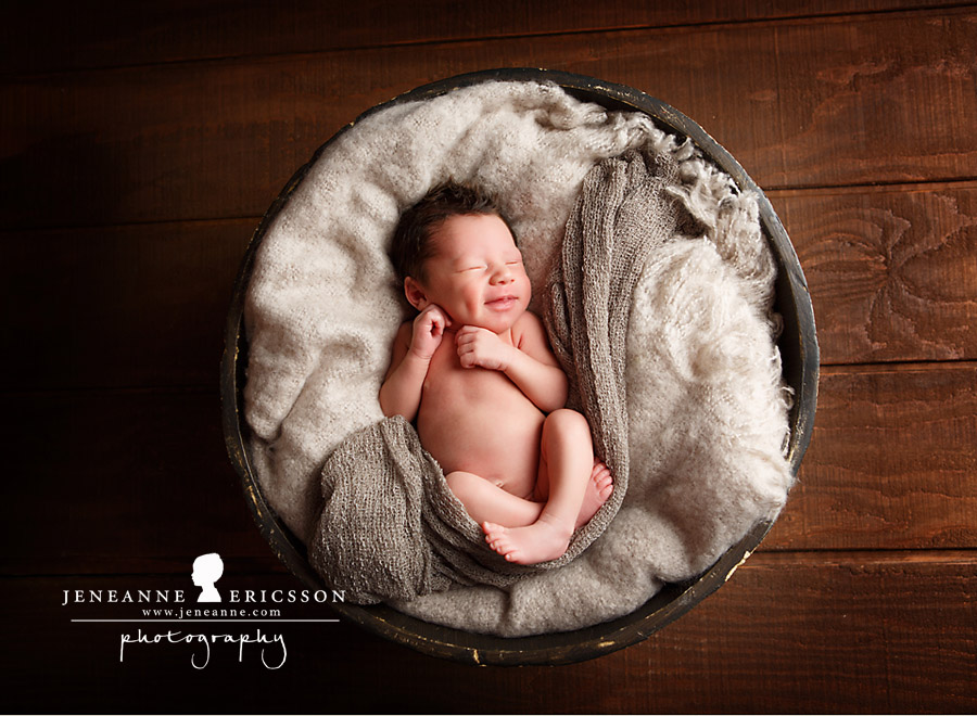 If there is a prize for the most smiles in a newborn session this guy takes it! He didn’t open his eyes the whole time, and was just as content as can be. Just a little peanut not quite 6 lbs, he was just adorable…and that hair…swoon! Such a fun session!