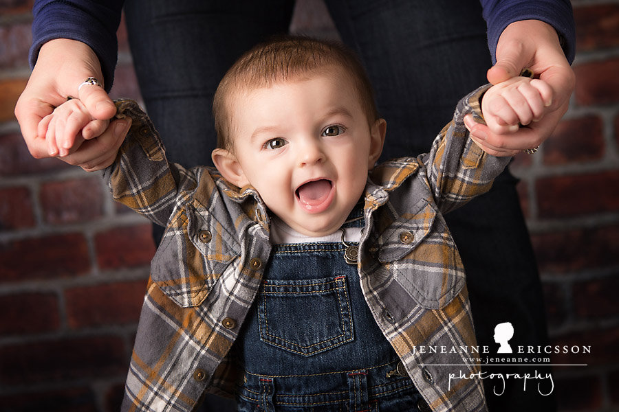 J is 8 months old and wants to STAND. I love how babies are so focused on whatever skill they are learning and they do it over and over and over. Such perseverance! But we coerced a few other poses out of this little man!