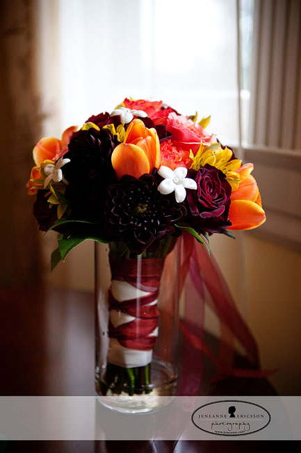 Well, it was a day I really pushed my camera, (for my photog friends…the OUTDOOR pictures where taken at ISO 2000!) Indoors at least I could use my flash! Anyhow. The rain held at bay and we trapsed through the damp leaves and I LOVE how the pictures turned out! As beautiful as their wedding day was.