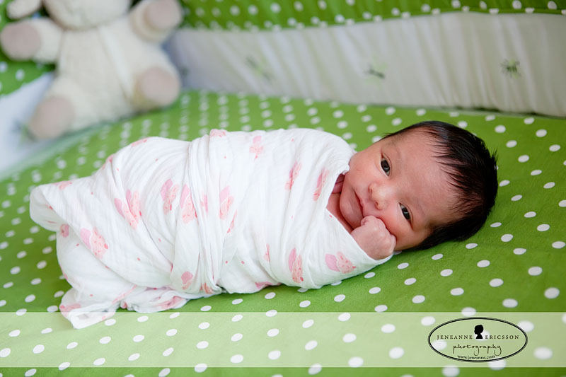 I loved meeting this new little one! Can you believe that I got to meet two little “E’s” this week! But they don’t have the same name! Her big sister is enamored with her and did a great job holding her! I loved her super cute room decor too!