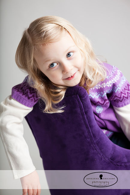 It was great to meet up with the D kids…they did soo well for being out on a chilly day. We explored the green areas around my studio since we weren’t sure if we’d have to head inside suddenly, but the weather held out and we just did a few inside for fun. I loved how the last few of the girls with the chairs turned out. We had basically finished up, but K really wanted a picture with the purple chair…and E wasn’t going to be left out!