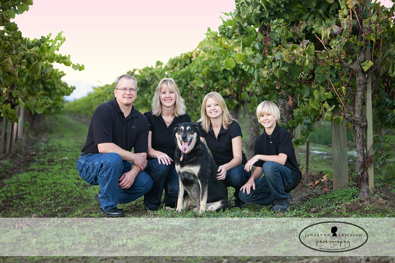 Another great family session out at Riverfront. We were patient and waited for the sun to be just “so” to get some sunset pics in the vineyards! And what a good dog! Things relaxed a bit after I had them try the “Monkey’s” walk…as in “hey hey we’re the Monkeys, people say we monkey around…but were to busy singing…TELL ME I”M NOT THE ONLY one who remembers this? Does this mean I’m getting OLD?